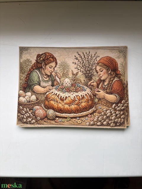 Képeslap - törpe asszonyok húsvéti kalácsot készítenek