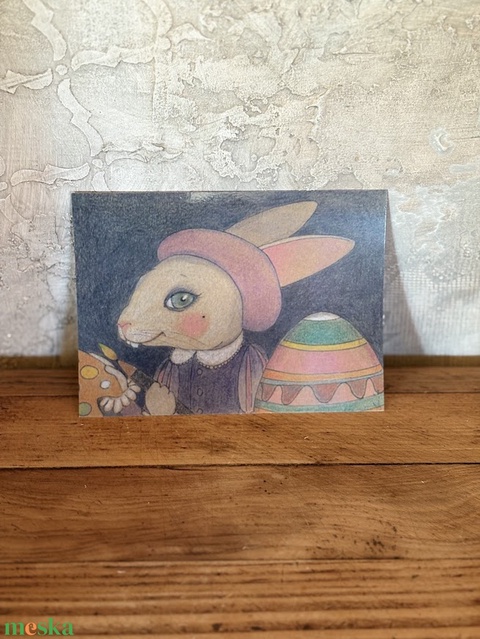 Képeslap - Húsvéti nyúl hímes tojással