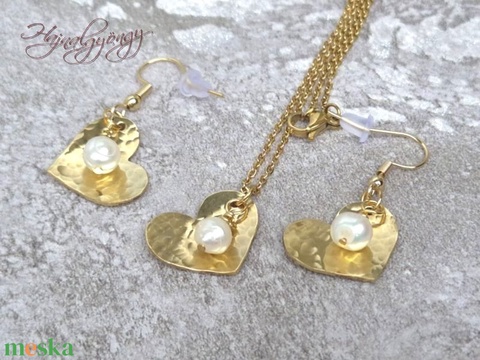 Sárgaréz szív szett igazgyönggyel