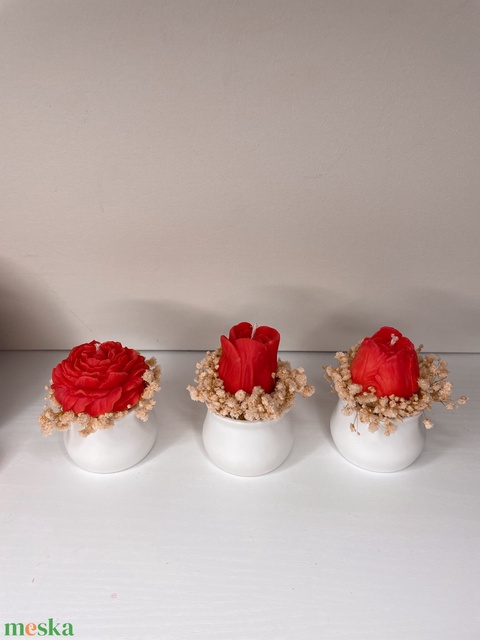 - Anyaga: szójaviasz, szárított virágok, kicsi virágtartó