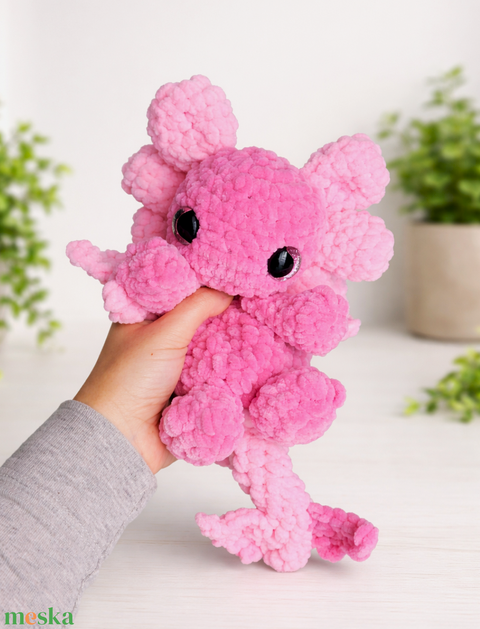 Horgolt rózsaszín aranyos sárkány plüss