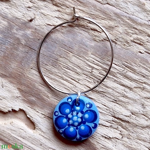 Pohár jelölő karika pontfestett függővel (kék-szürke)