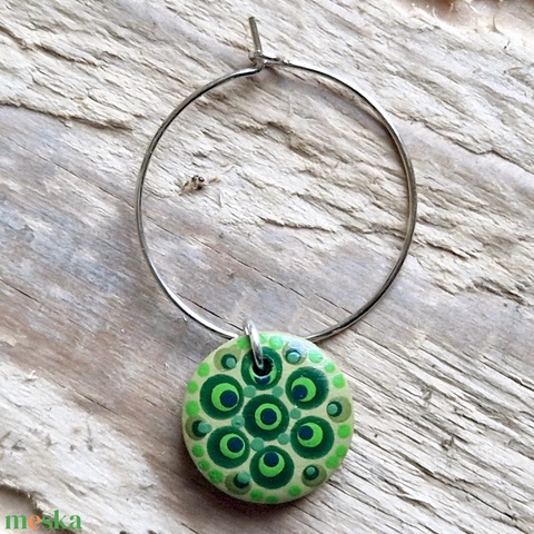 Pohár jelölő karika pontfestett függővel (zöld)