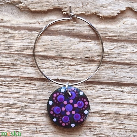 Pohár jelölő karika pontfestett függővel (lila-méregzöld)