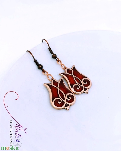 Hej'tulipán - Mátkám bronz tűzzománc fülbevaló, piros