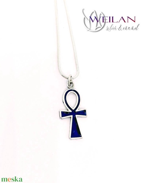 Tűzzománcozott ezüst Ankh kereszt medál - sötétkék