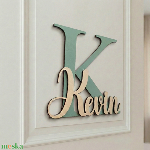 Ez a kézzel készített ajtó névtábla egy nagy, karakteres kezdőbetűből áll, amelyre kézírás stílusú betűkkel kerül rá a gyermek neve. A két elem külön színre festhető, így minden darab egyedi. Tökéletes választás névtábla ajtóra, gyerekszoba fal dekorációként vagy polcra helyezve – természetes, időtálló falidísz fából, amely hosszú éveken át díszíti a teret. KIALAKÍTÁS ÉS KÉZMŰVES MINŐSÉG - Masszív, nagybetűs fa alap - Gondosan csiszolt, festett és ragasztott - Stabil, rétegelt kialakítás - Minőségi, természetes fa alapanyag SZÍNEK Külön megadható a név színe és a nagybetű színe RENDELÉS MENETE 1. Válaszd ki a méretet 2. A Kosár oldalon legalul, a Megjegyzés mezőbe írd be: • a kívánt nevet • a név színét • a nagybetű színét Például Név: Dóri Név szín: sakura Nagybetű szín: dusty rose A név a nagybetű alsó részére kerül. A név nyugodtan tartalmazhat ékezetes betűket is. MÉRETEK A képeken látható példák 30, 35 és 40 cm-esek. A méret a nagybetű méretét jelöli. A név, ehhez van hozzáigazítva. A teljes szélesség a nagybetű szélességétől függ. Elérhető magasságok: • 15 cm • 20 cm • 25 cm • 30 cm • 35 cm • 40 cm • 45 cm Fa vastagsága: 3 mm RÖGZÍTÉS A névtábla ajtóra vagy falra rögzíthető: • kétoldalú ragasztóval • ragasztócsíkkal • kis szöggel Rögzítőelemek nem tartozékok. A leesésért felelősséget nem tudok vállalni. AJÁNDÉKNAK IS TÖKÉLETES Ez az egyedi ajtódísz ideális ajándék: születésre keresztelőre születésnapra Időtálló, személyes. FONTOS A fa természetes anyag – eltérések előfordulhatnak a fotók és az elkészült termék között. Enyhe lézervágási nyom a széleken, hátoldalon megjelenhet. A fotókon látható esetleges dekoráció nem része a csomagnak. CSOMAGOLÁS & SZÁLLÍTÁS Rendelésre készülő termék Gondosan csomagolva kerül feladásra VISSZAKÜLDÉS Személyre szabott termék, ezért a visszaküldés nem lehetséges. Hibás termék esetén 14 napon belül vedd fel velem a kapcsolatot és örömmel segítek. 👉 További ajtódíszek, gyerekszoba és babaszoba dekorációk, pecsétek itt: https://www.meska.hu/shop/Biscuitist Köszönöm, hogy a termékeimet választod 🤍 Niki @biscuitist