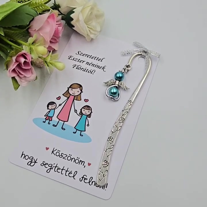 Angyalkás könyvjelző ajándékkártyán - Ajándék óvó néninek
