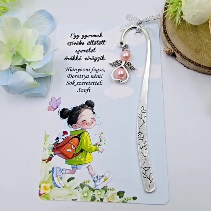 Angyalkás könyvjelző ajándékkártyán - Ajándék óvó néninek