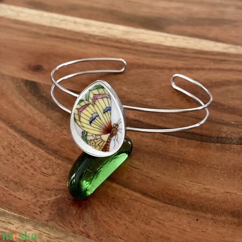 Mentett porcelán darabok - pillangós nemesacél karperec - állítható