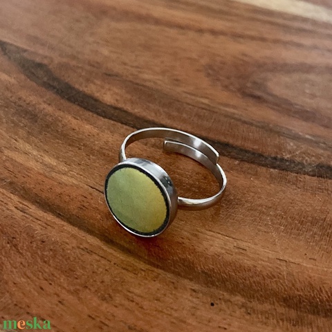 Eozinos mentett porcelán darabok - nemesacél gyűrű - eozin mázas, állítható
