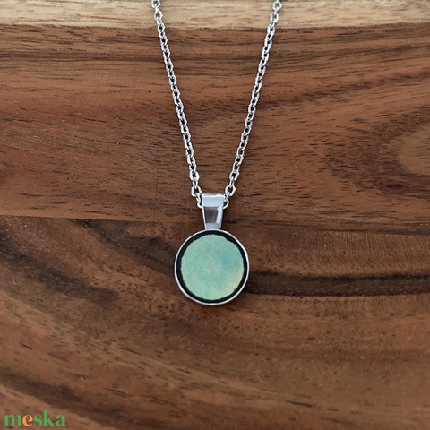 Eozinos mentett porcelán darabok - pici medálos nemesacél nyaklánc eozin mázas porcelánnal