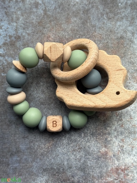 Csörgő rágóka #21 Zsálya Karamell Antracit kezdőbetűvel