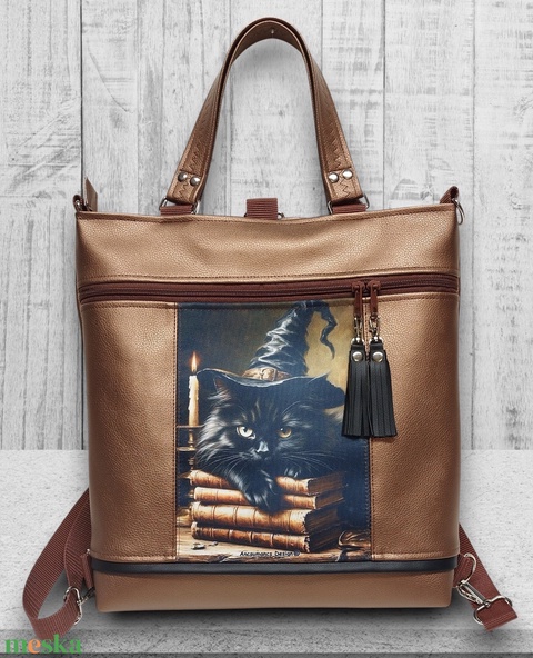 Roxfort cicája 4in1 nagy csini nagypaneles kis kézifüles univerzális táska hátizsák Bronzbarna