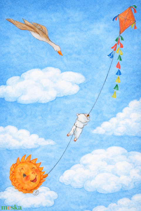 Napocska és Bárányka - Sárkányeregetés vidám, mesés rajz/kép gyerekszoba dekoráció digitális/letölthető