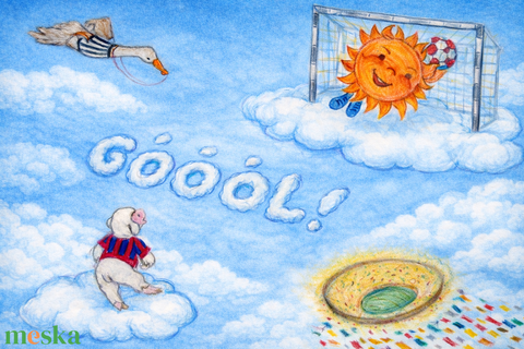 Napocska és Bárányka fociznak vidám, mesés rajz/kép, dekoráció gyerekszobába digitális, letölthető