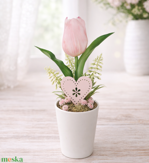 Élethű tulipán kerámia kaspóban-rózsaszín