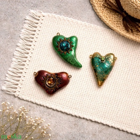 - Anyaga: polymer gyurma (ékszergyurma), ékkövek, akasztó, uv gyanta, lánc, szerelék, medálvezető, metál füstfólia, alkoholtinta, fémes charmok