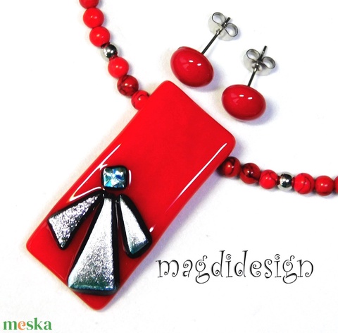 Ezüst szögek meggypirosban üvegékszer szett