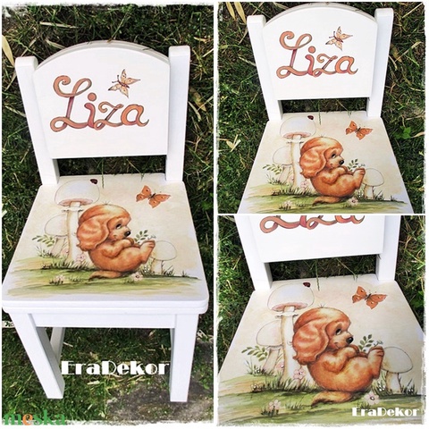 Kutyus és a gomba, festett szék kislányoknak 1db
