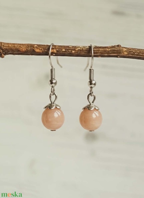 - Anyaga: ródiumozott szerelék, 925 sterling ezüst fülbevaló alap, barackszínű holdkő gyöngy 8 mm