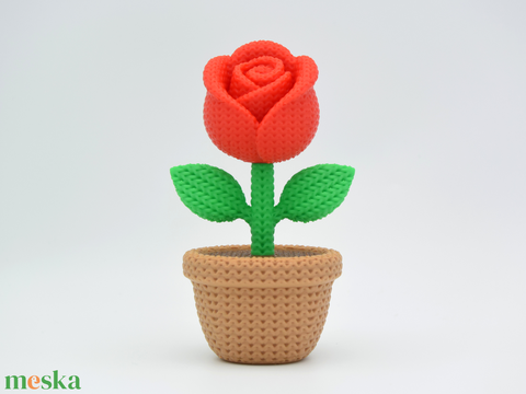 Kötött hatású műanyag rózsa kaspóban – örök virág dekoráció