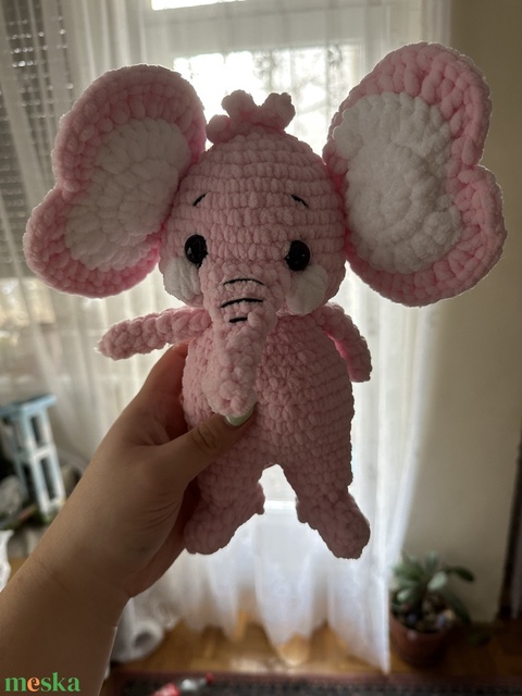 Zsenília fonalból készített plüss elefánt.