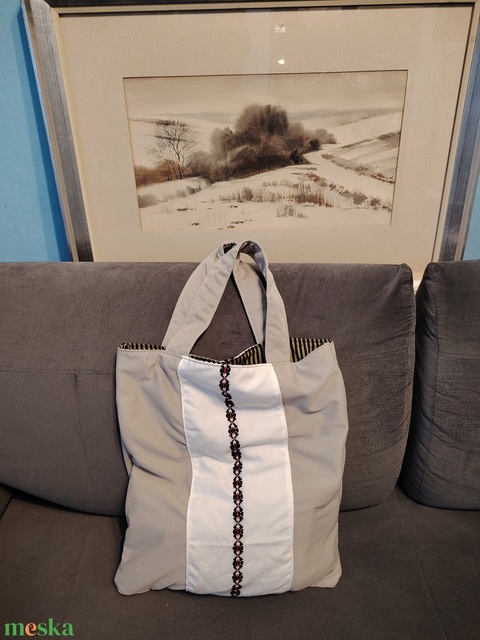 Bézs szatyor hímzett sávval