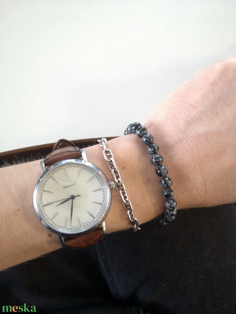 - Anyaga: hópehely obszidián gyöngy 8 mm, nemesacél csomórejtő, bronz színű csomórejtő, gumidamil