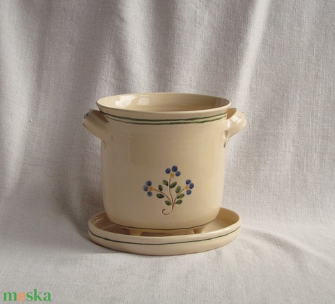 Evőeszköz szárító, mélyített díszítéssel, kék festett virágokkal