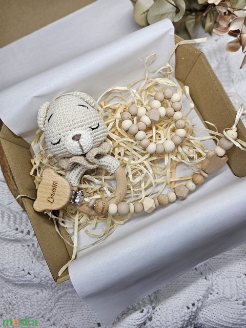 Első ajándékom - Bézs macis Babaváró ajándék Babaköszöntő ajándékbox