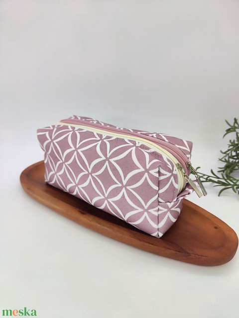 Dupla cipzáras tároló fáradt rózsaszín alap, púder rózsaszín neszeszer, tolltartó