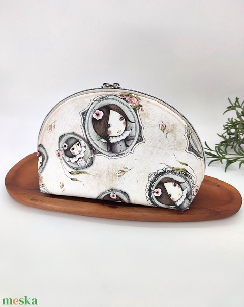 Cipzáras tároló utazó neszeszer, hölgy minta, vintage, Mirabelle