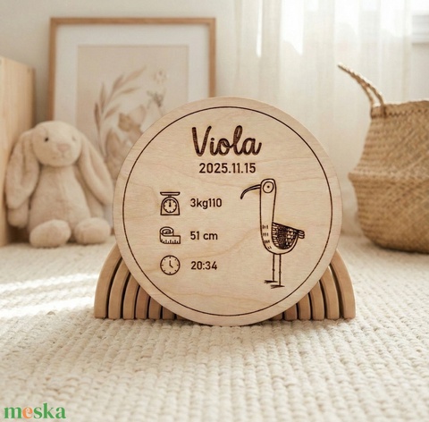 Baba emléktábla fából, babaszoba dekor, ajándék születésre, babafotózáshoz kiegészítő