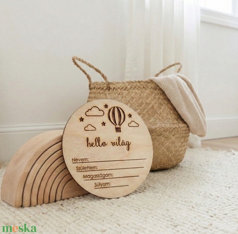 Babafotózási kiegészítő, kellék, baba emléktábla fából - hőlégballon