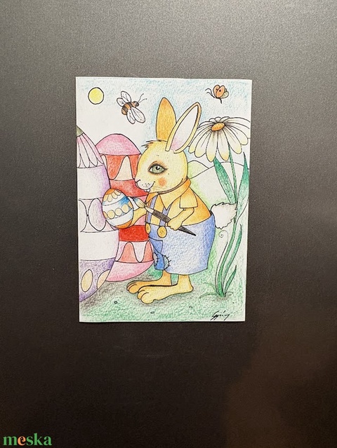 Hűtőmágnes - Húsvéti nyúl tojást fest