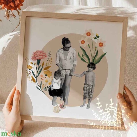 Névre szóló egyedi fotó kollázs hónapvirág ajándék