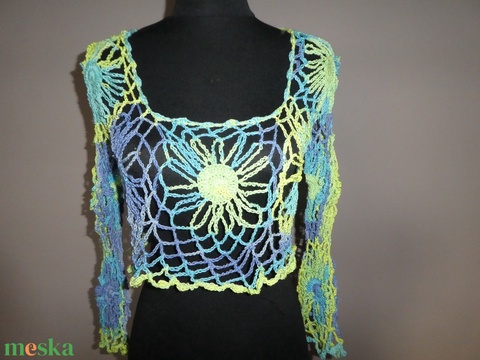 horgolt rövid felső 3/4-es ujjú s-m-es