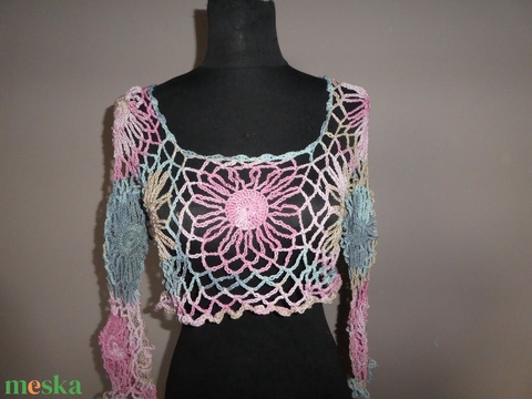 horgolt rövid felső 3/4-es ujjú s-m-es