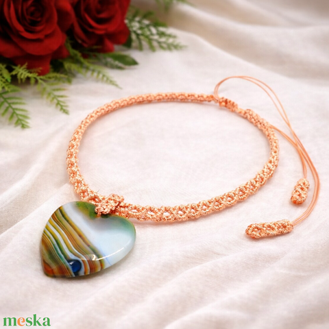 Barack színű makramé nyaklánc szív alakú medállal