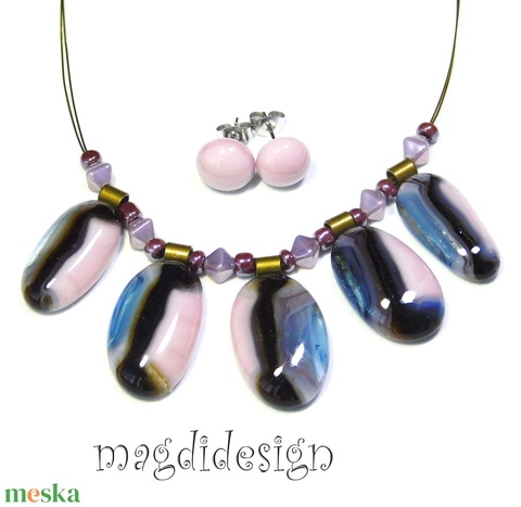 Púderes tarkaság üvegékszer szett, nyaklánc, stiftes fülbevaló