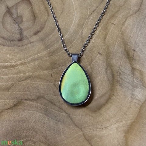 Eozinos mentett porcelán darabok - nyaklánc, nemesacél csepp medálos