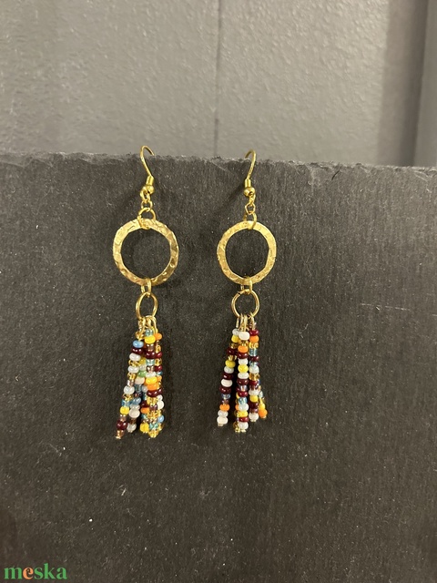 Színes gyöngyös hosszú lógós arany színű fülbevaló