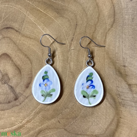 Mentett porcelán darabok - nemesacél fülbevaló - csepp forma, nefelejcs