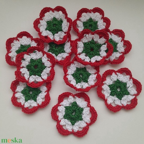 Nemzeti színű horgolt dísz, kokárda (85 db/csomag)