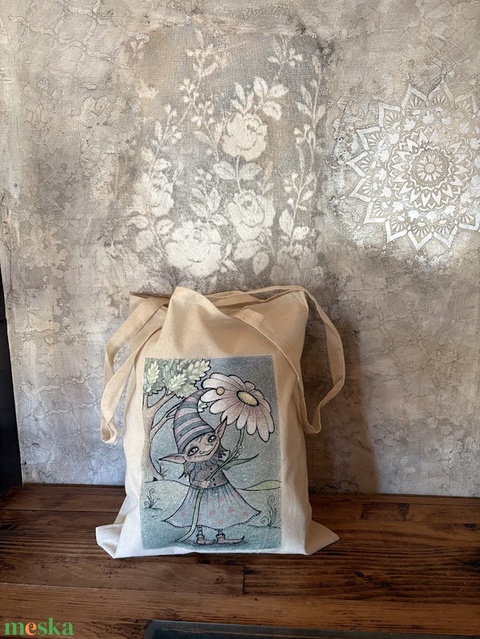 Natúr vászonszatyor tavaszi manólány mintával