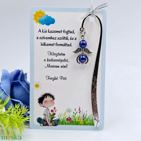 Angyalkás könyvjelző ajándékkártyán - Ajándék óvó néninek