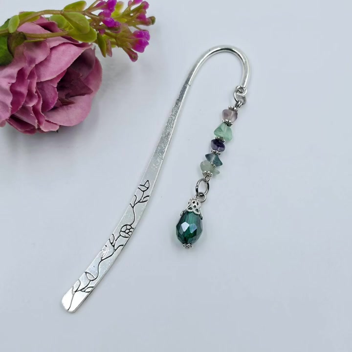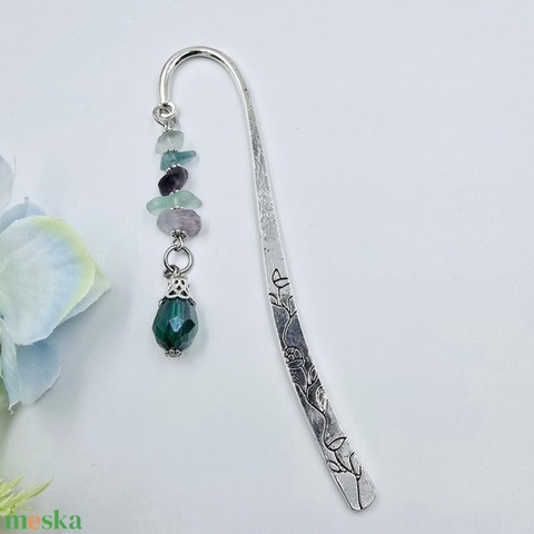 - Anyaga: fém könyvjelzőszár, csiszolt gyöngy, termelékenység fluorit