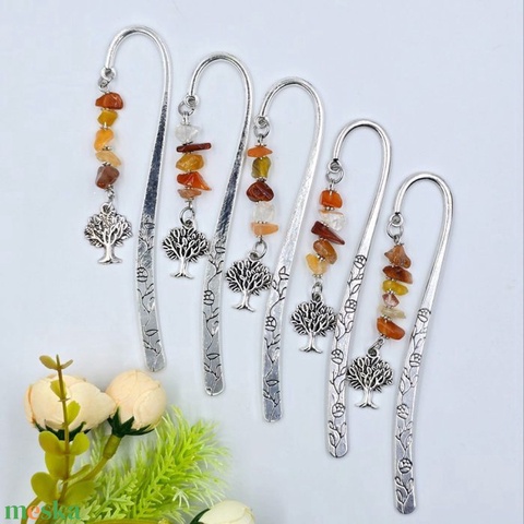 "Haisley" - 5 darabos könyvjelző csomag karneol ásvánnyal, életfa charmmaltörmelékes ásványokkalásványokkal