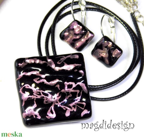 Rózsaszín fekete galaxis üvegékszer szett, nyaklánc, kapcsos fülbevaló